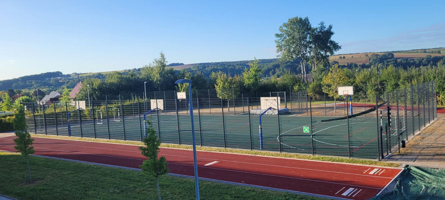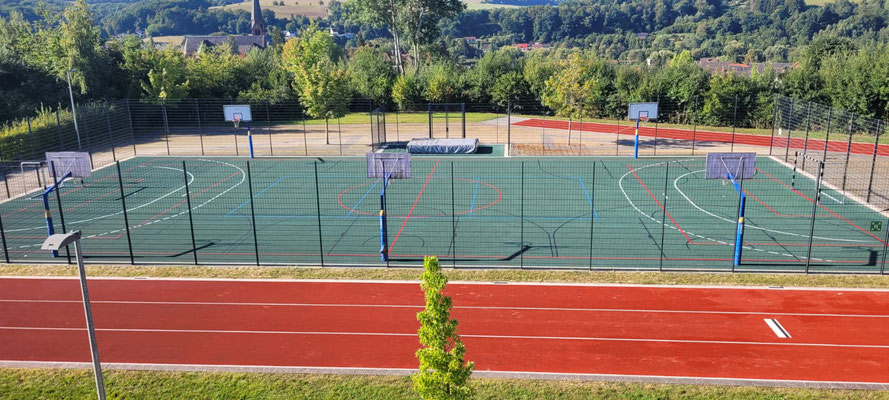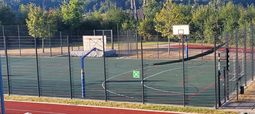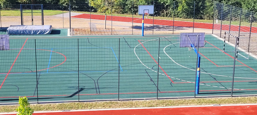 Die Sommerferien wurden dazu genutzt, den Belag des Kleinfeldes auf unserer Außenanlage zu erneuern. Nachdem der alte Belag witterungsbedingt brüchig und porös geworden war, reagierte die Kreisverwaltung prompt und kümmerte sich zügig um einen entsprechenden Austausch. Seit Beginn des Schuljahres blüht unser Kleinfeld damit nicht nur in neuem Glanz, vor allem wird mit dem neuen Belag die Verletzungsgefahr deutlich minimiert. Noch einmal vielen Dank für die schnelle Erneuerung!